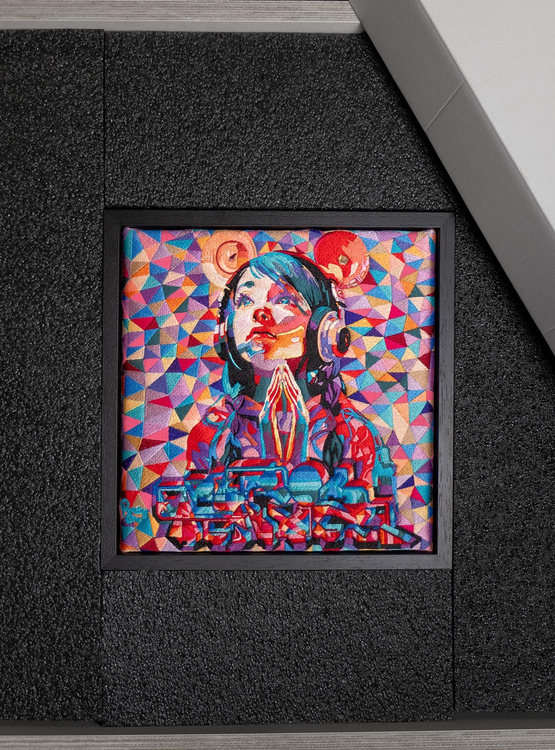 VANGART embroidery featuring 17 colors on black moleskine. Composed of 317,768 stitches, entirely crafted in Lyon, France.